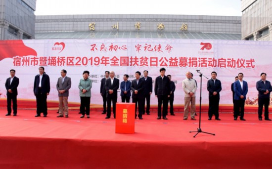 10月17日,宿州市暨埇橋區(qū)2019年全國扶貧日公益募捐活動啟動儀式在宿城銀河廣場隆重舉行。募捐現(xiàn)場,我市愛心企業(yè)、單位、個人踴躍捐款,用實(shí)際行動助力脫貧攻堅(jiān)。記者 董虎 攝